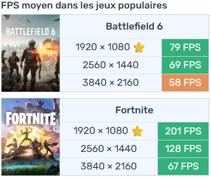 Avec la RTX 5060 Ti 16 Go et l’un des deux processeurs 6 cœurs modernes, ce PC délivre des performances excellentes en 1440p Ultra à 90–144+ FPS sur tous les jeux récents.